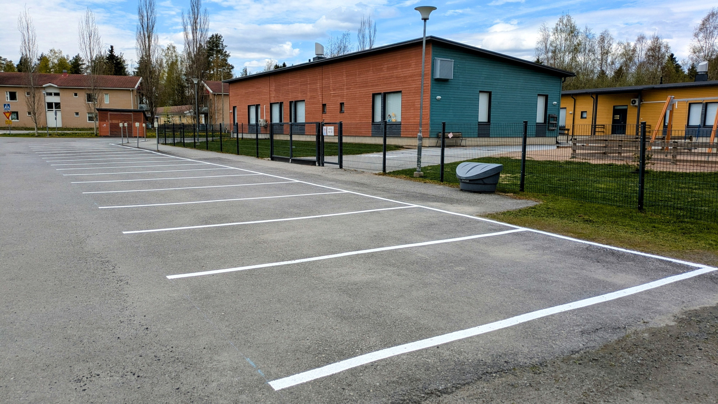 Asfalttimerkinnät teemme kulutusta kestävillä asfaltin maalaukseen tarkoitetuilla Teknos maaleilla.